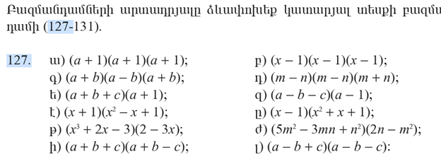 ե)-(5a – 2b)(3b + 2a) = 25ab + 10a2 – 6b2 — 4ab = 25ab — 10a2 + 6b2 + 4ab