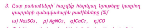 3. Գրե՛ք նյութերի քիմիական բանաձևերը, եթե հայտնի է, որ դրանց բաղադրության մեջ առկա են.