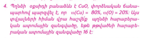 5. Հաշվե՛ք կալցիումի օքսիդի (CaO) մոլեկուլի զանգվածը (mo, գ), եթե Mr = 56: