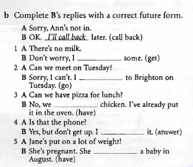 B Sorry, i cant. I`ll go to Brighton on Tuesday.
