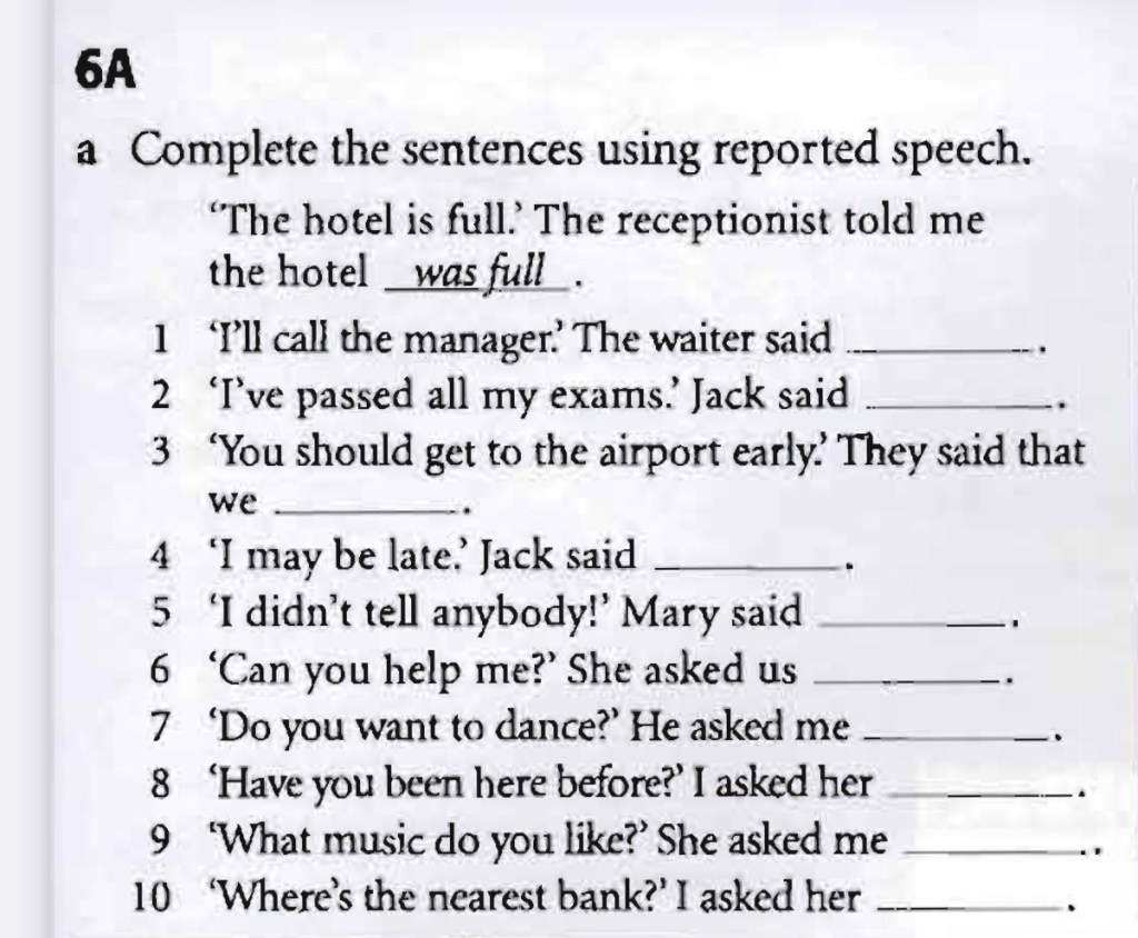 8) ‘Can you bring me the bill, please?’ He asked the waiter to bring him the bill.