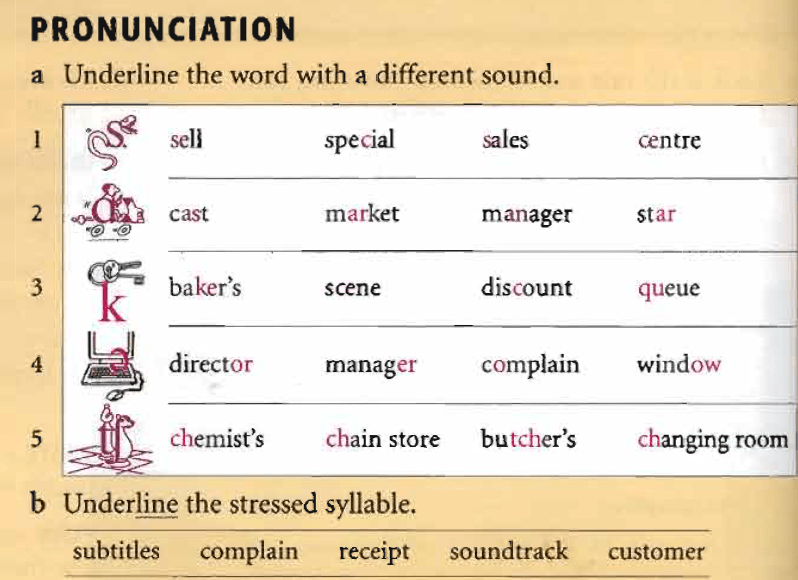 1) special 2) manager 3) scene 4) window 5) chemist’s