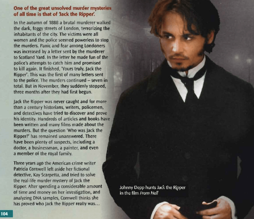 NEF Student’s Book Reading slide 105, Murder mysteries, read the story and answer the question on slide 105 in a written form.