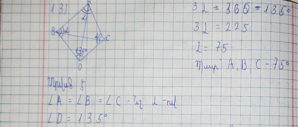 Քանի որ եռանկյան անկյունագծերը իրար փոխուղղահայաց են, հետևաբար ∢DOA = 90o: