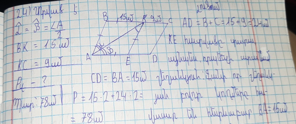 1․Զուգահեռագծի բարձրությունը կողմի հետ կազմում է 40°-ի անկյուն: Հաշվիր զուգահեռագծի բութ անկյան մեծությունը: