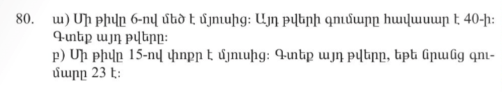 Հին Աթենքում կար ջրհոր, որը լցվում էր 3 խողովակներից: Խողովակներից մեկը ջրամբարը լցնում էր 1 ժամում, մյուսը` 2 ժամում, իսկ երրորդը` 3 ժամում: 3 խողովակները միասնի քանի՞ ժամում կլցնեն ջրհորը: «Անանիա Շիրակացի, VII դար»