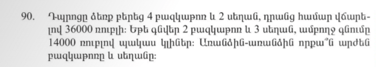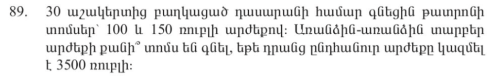 Անանիա Շիրակացու խնդիրները մեզ միայն փոքր մասն է հասել, սակայն որոշները պահպանվել են։ Ահա Անանիա Շիրակացու որոշ խնդիրներից մեկը։