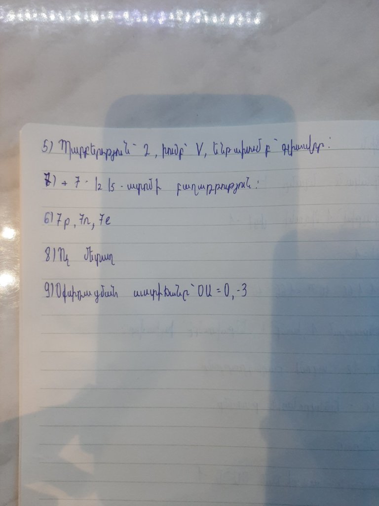 - Քանի՞ քիմիական տարր է առաջացնում հետևյալ պարզ նյութերը` թթվածին, կարբին, սև ֆոսֆոր, օզոն, ալմաստ, կարմիր ֆոսֆոր, ֆուլերեն, գրաֆիտ, սպիտակ ֆոսֆոր.